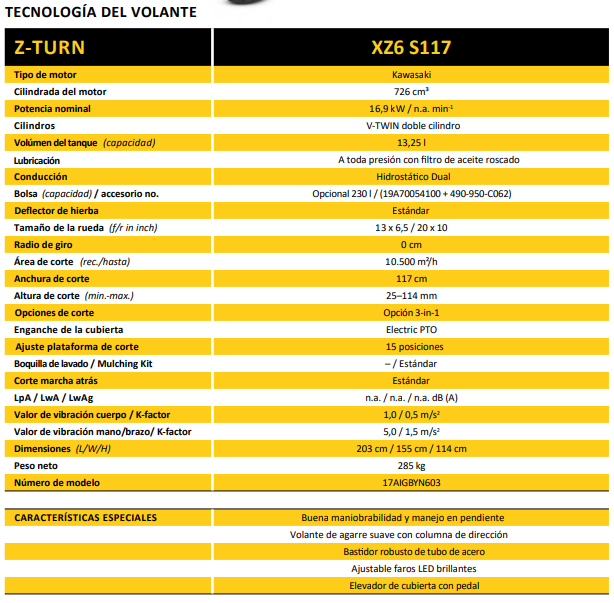 Detalle a detalle, los XZ-6 ofrecen más. La maniobrabilidad de un Giro “0” combinada con la facilidad del control por volante y las cuatro ruedas dirigidas nos da una estabilidad inigualable y una versatilidad sin precedentes. Una combinación ganadora, sin duda son duras y precisas. Increíble durabilidad, no habrá lugar a dudas en los años venideros.