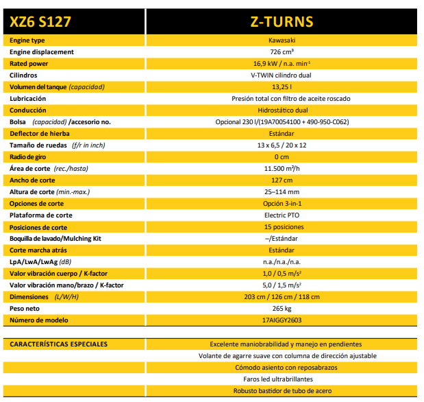 Detalle a detalle, los XZ-6 ofrecen más. La maniobrabilidad de un Giro “0” combinada con la facilidad del control por volante y las cuatro ruedas dirigidas nos da una estabilidad inigualable y una versatilidad sin precedentes. Una combinación ganadora, sin duda son duras y precisas. Increíble durabilidad, no habrá lugar a dudas en los años venideros.