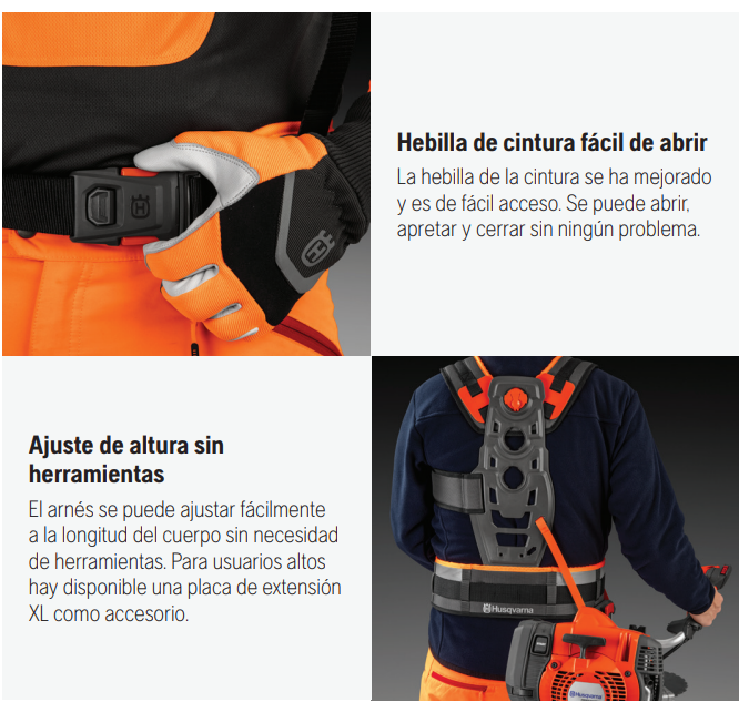 El Arnés Balance XT2 de Husqvarna cambia eso por completo. Imagina trabajar sintiéndote ligero,